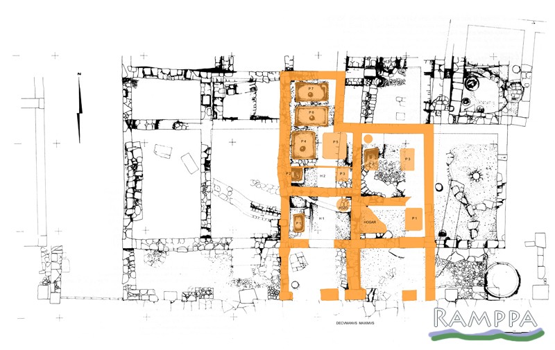 Los excavadores plantean la construcción del complejo a mediados del s. I d.C. gracias a las catas estratigráficas realizadas, con un abandono generalizado de la actividad en el último tercio del s. III, asociado a un incendio; se produce una reocupación posterior que dura hasta muy finales del s. IV o inicios del s. V d.C., momentos hasta los cuales la actividad conservera perduró, como se deduce de los rellenos de algunas cubetas con ARSW D y numerario de estas fechas.
