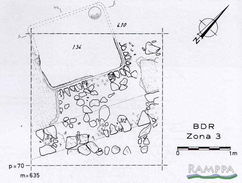 En los sondeos de los años 80 se documentó en el área 3 una pileta de salazones casi cuadrangular, con 1.3x1.6x1.9m, con una capacidad estimada de 3,9 m3, que pertenecía a una fábrica de dimensiones desconocidas.