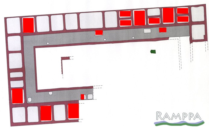 En el pasillo había algunas piletas de menores dimensiones y profundidad (c. 2x1m). Es posible que más que estar destinadas a la producción, estas piletas tuviesen otra función en el complejo, relacionada con la producción en las piletas de mayor talla.