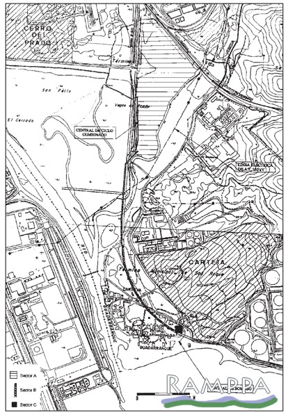 En el entorno de Carteia, se localiza una pileta de salazón, documentada al realizar el control arqueológico de una canalización para tuberías que discurre en la franja situada entre el yacimiento de Carteia y el poblado de Guadarranque. La balsa documentada solo es documentada parcialmente, posibilitando la identificación de unas medidas parciales de 1,90 x 1,30 m. Esta pileta fue tapada tras su documentación superficial. A unos 30 m de este hallazgo se vuelven a documentar fragmentos de opus signinum que se asocian de nuevo con posibles piletas de salazón, identificandose así un área que, en dirección al río Guadarranque, podría estar funcionando como una cetaria. En relación al material mueble, localizado de forma dispersa, se identifican casi un centenar de fragmentos de ánforas salazoneras que se pueden abarcar entre el s. I a.C. y III d.C.