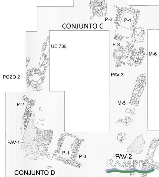 Se ha podido excavar un nivel constructivo asociado al área de captación hídrica (U.E. 736) que ha permitido fechar la construcción del complejo fabril en época augustea o tiberiana, como es lo coherente con el contexto general de la excavación y la dinámica vital de la ciudad romana. Se han detectado algunas amortizaciones en la primera mitad del s. II (ala sur, cubeta P-1), así como un relleno y abandono generalizado de la actividad en la fábrica en el s. IV (relleno de pozo y colamatación de la plataforma de opus signinum), no continuando la actividad conservera con posterioridad (reocupaciones bizantinas).