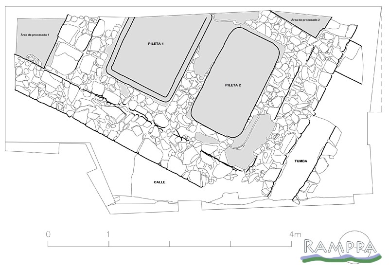 Romano Altoimperial. Construcción (estimada: posterior a inicios del tercer tercio del s. I a.C.). Abandono pileta: mediados siglo II d.C.