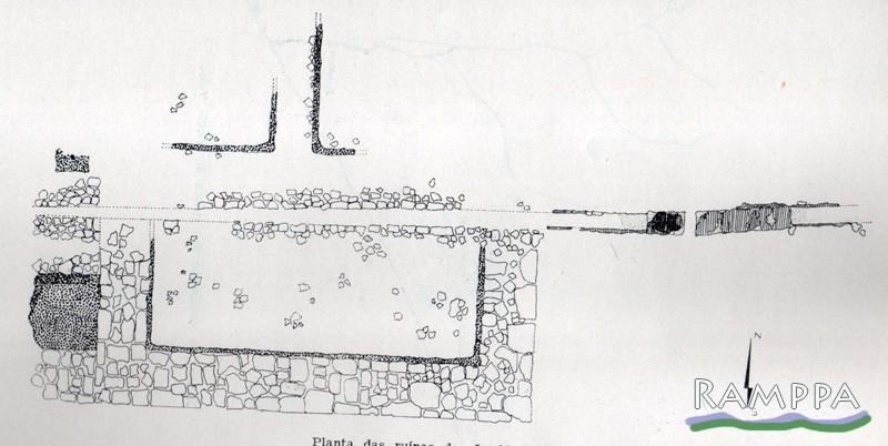 En una publicación se presenta un dibujo muy esquemático de lo que se clasifica como piletas de salazones asociadas a un canal construido en piedra y cerámica (se habla de una canalización de plomo que habría sido retirada en los años 40 del siglo XX. Desafortunadamente, el dibujo no tiene escala. Pueden verse lo que parece parte de dos piletas de salazones (de dimensiones desconocidas), un canal construido de piedra y cerámica que separa esas piletas de otra(?)ode un tanque.