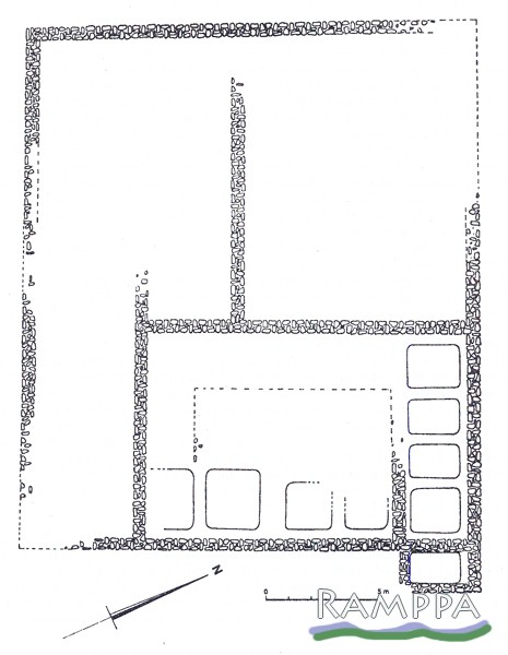 Séparé de 40 m de l’Ensemble 1 et à 10 m de la lagune, l’installation, dont l’état de conservation est relativement médiocre, adopte un plan rectangulaire (23 x 20 m), découpé en a priori trois grands blocs (fig. 1). Dans la partie est, la salle des bassins, dont 9 ont été en totalité ou partiellement dégagés, se compose d’un espace central dégagé autour duquel se distribuent les cuves, dont le nombre total est inconnu. Au nord, certaines d’entre elles sont séparées des autres par un muret maçonné ; le bassin, situé dans l’angle est, rectangulaire et saillant, est quant à lui entouré de murs. Les deux autres blocs – l’un, également rectangulaire, au nord et l’autre ayant la forme d’une galerie couverte de 5 m de large – n’ont pas livré suffisamment de structures pour que leur fonction soit clairement reconnue. Nul doute que ces espaces accueillaient à la fois le traitement et la préparation des poissons, ainsi que leur stockage après conservation.
