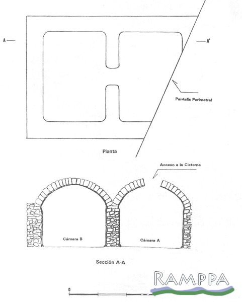 Esta explotación industrial se articula en torno a un patio central dedicado a la limpieza y despiece del pescado y que conserva en su límite sur las dependencias hidráulicas necesarias para estas labores como son una cisterna, un pozo y las canalizaciones de distribución de aguas. En sus márgenes norte y oeste se distribuyen sendos grupos de piletas (al norte 17 y al oeste 8 saladeros), dando un total de 25 balsas que permiten un volumen de producción estimado de 250 m3.