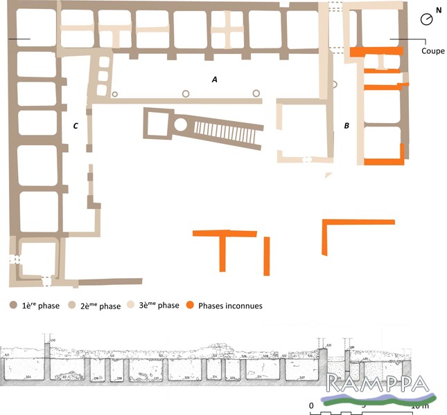 Três fases de ocupação, de acordo com as alterações arquitectónicas e o enchimento de alguns tanques, segundo o estudo de R. Étienne, Y. Makaroun e F. Mayet (1994):